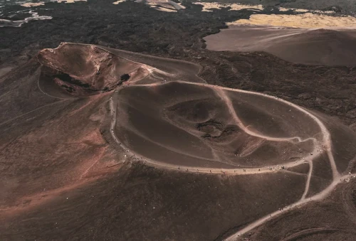 Over hundreds of thousands of years, repeated eruptive phases — both effusive and explosive — progressively accumulated vast volumes of lava, ash and pyroclastic material. These deposits gradually constructed the large stratovolcano that dominates the landscape today.
