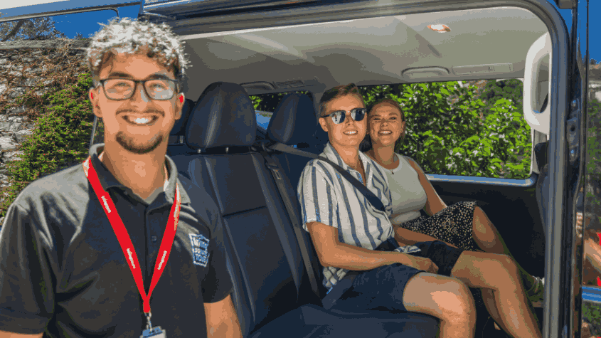 Most pickups take place at predefined meeting points because of traffic restrictions.